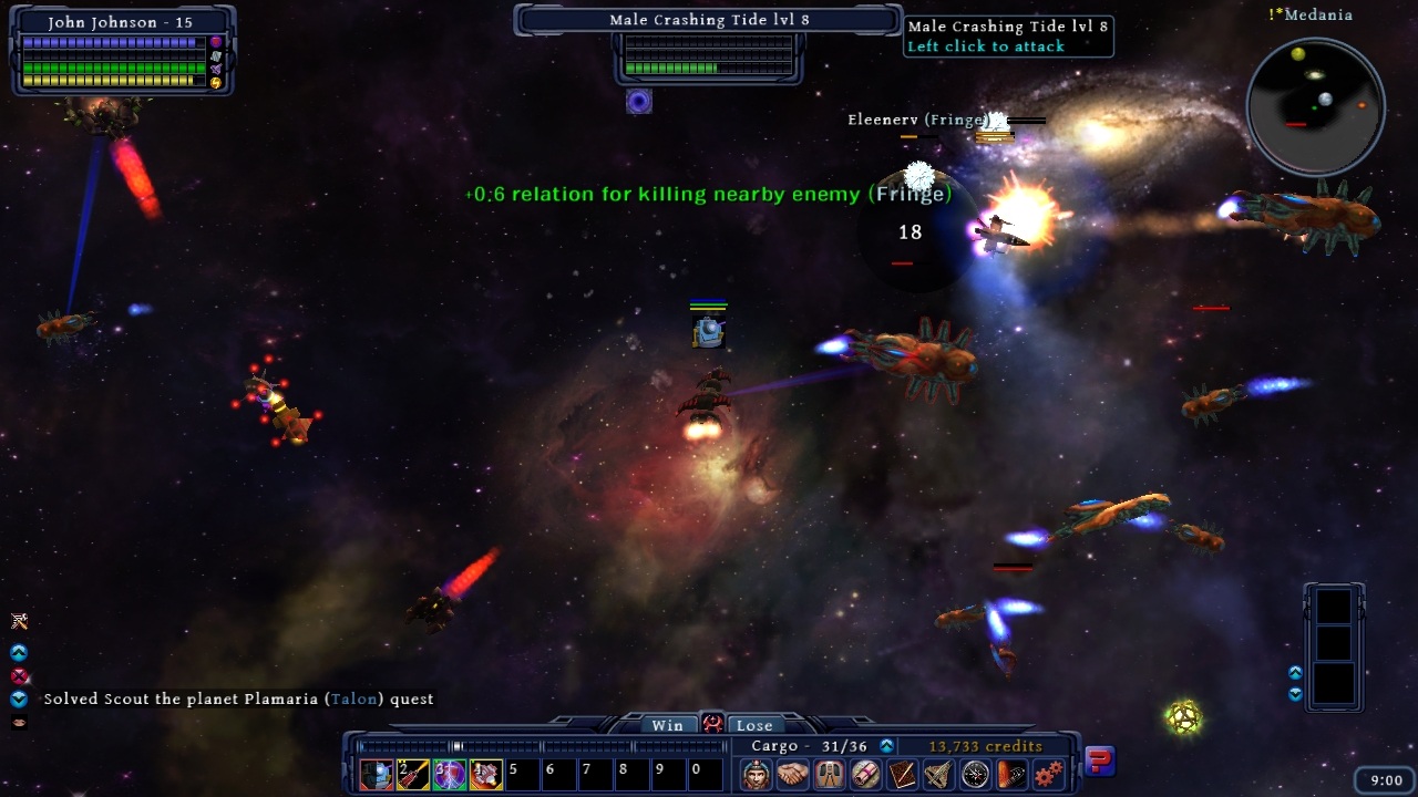 In Drox Operative, you’re given free reign over the basic parameters of your play environment (how big it is, how fast it moves, how difficult the squishy enemy mobs will be) and dropped head-first into a game that, again, should seem familiar enough to anyone who’s come into contact with Diablo and its ilk. Clicking on enemies launches attacks, clicking on the stuff they drop puts it into your inventory, and beyond that, you can level up, equip yourself with all manners of fancy weaponry, and run errands for anyone in the galaxy who might happen to need their shopping picked up.