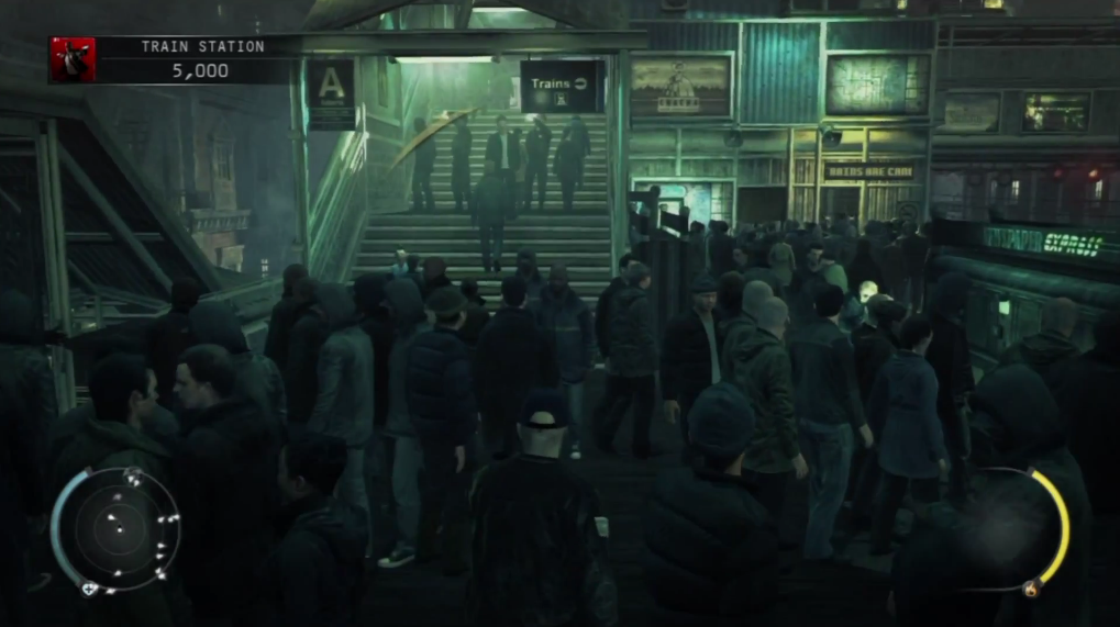 Most of Absolution‘s achievements are purely technical. IO’s new Glacier 2 engine proves stunning on both console and PC, and finally does justice to the ‘neon grime’ art design that was so prevalent, and yet technically restrained in the earlier Hitman: Contracts. Blood Money’s awkward middle-ground discounted, it’s great to finally see a high-definition Hitman game; and the capabilities of the technology really shine through as early as the game’s second level, where bustling crowds are realised in a much more reactive, dynamic faction than in the series’ previous efforts. Square Enix, first-time publisher of the series, are obviously putting some of their money in the right places; Absolution is the first IO Interactive game that feels like it’s been given a proper spit-shine, and accentuates their confidence and skill as developers as a result. (Consider yourself forewarned, however, a few sections have the ‘glare’ slider set to ‘five thousand suns’. Some of Absolution’s brighter areas forced me to literally squint at the screen to avoid eye damage.)